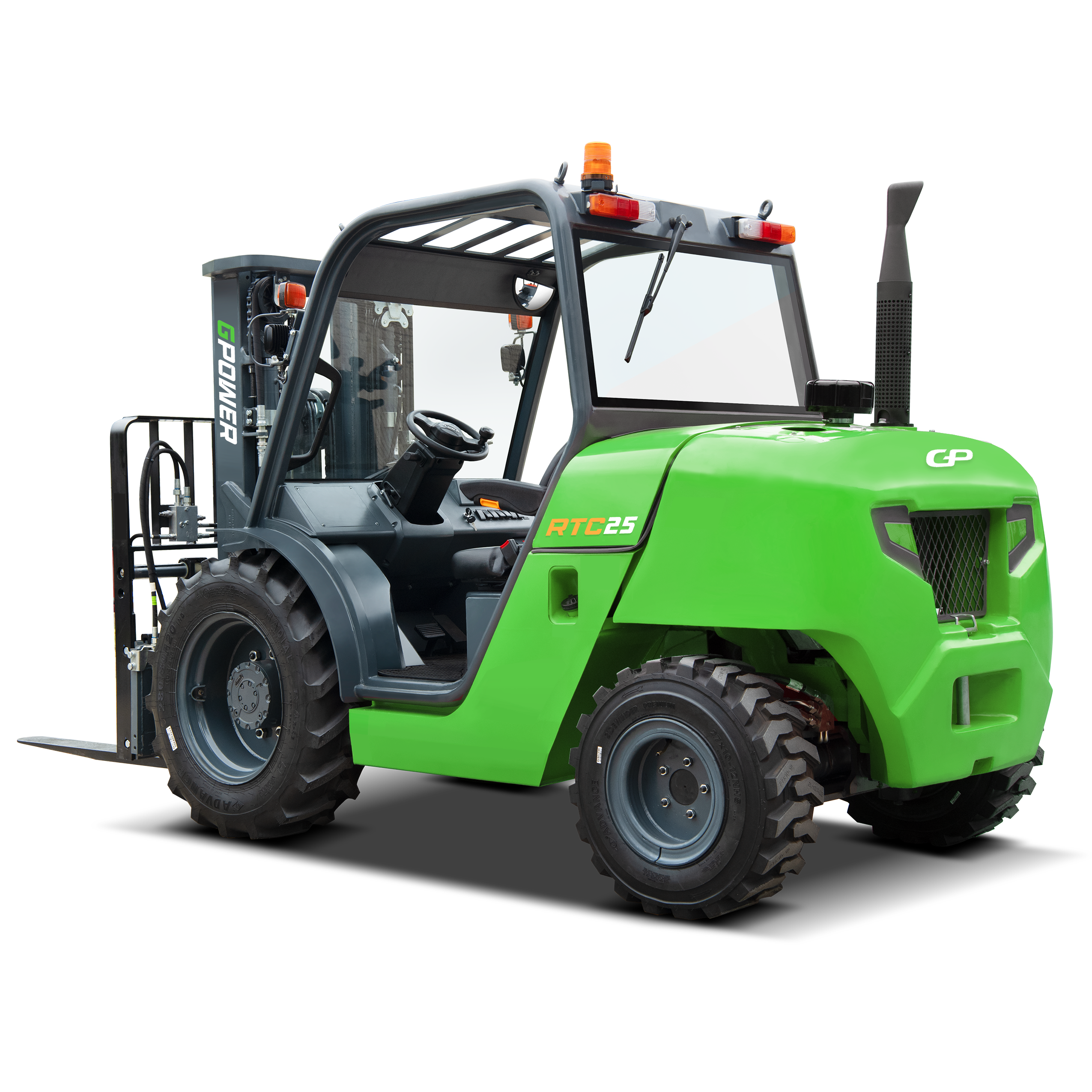 G Power RTC25 Diesel Rough Terrain Forklift | Compact Model | 4700mm Lift | Capacity: 2500kgs | Full Cab – 4WD | Fork Positioner